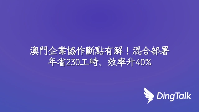 在粵港澳大灣區融合加速的今天,釘釘澳門正成為企業突破系統孤島、實現高效跨境協作的關鍵引擎。平均提升40%營運效率,不只是技術升級,更是競爭力重構。