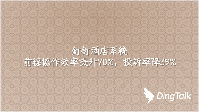 釘釘酒店系統:前線協作效率提升70%,投訴率降39%
