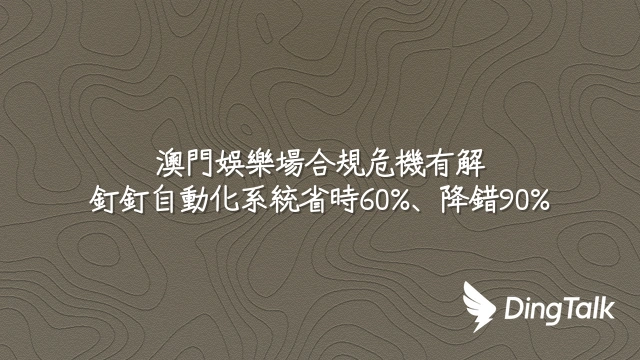 澳門娛樂場合規危機有解:釘釘自動化系統省時60%、降錯90%