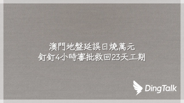 澳門地盤延誤日燒萬元?釘釘4小時審批救回23天工期