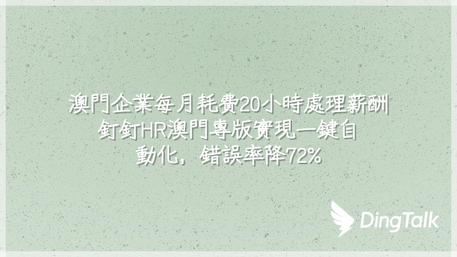 澳門企業每月耗費20小時處理薪酬?釘釘HR澳門專版實現一鍵自動化,錯誤率降72%