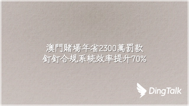 澳門賭場年省2300萬罰款:釘釘合規系統效率提升70%